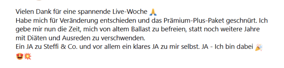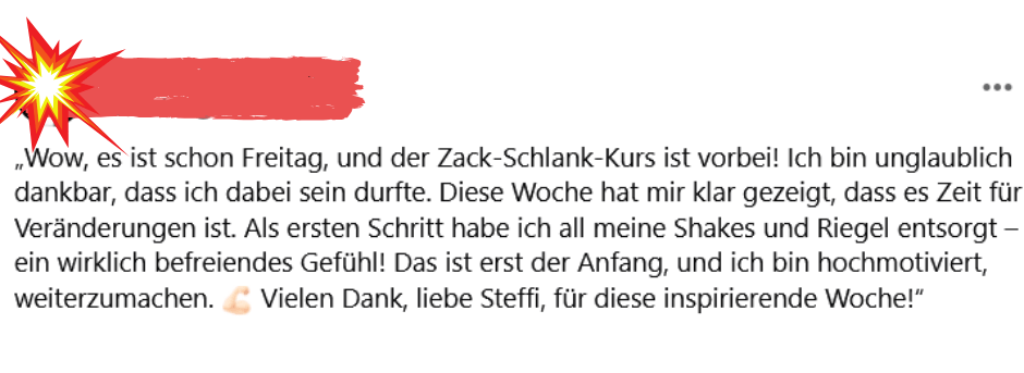 Ach und: Ich kenne alle Ausreden, warum schlank bei DIR angeblich nicht gehen soll.
